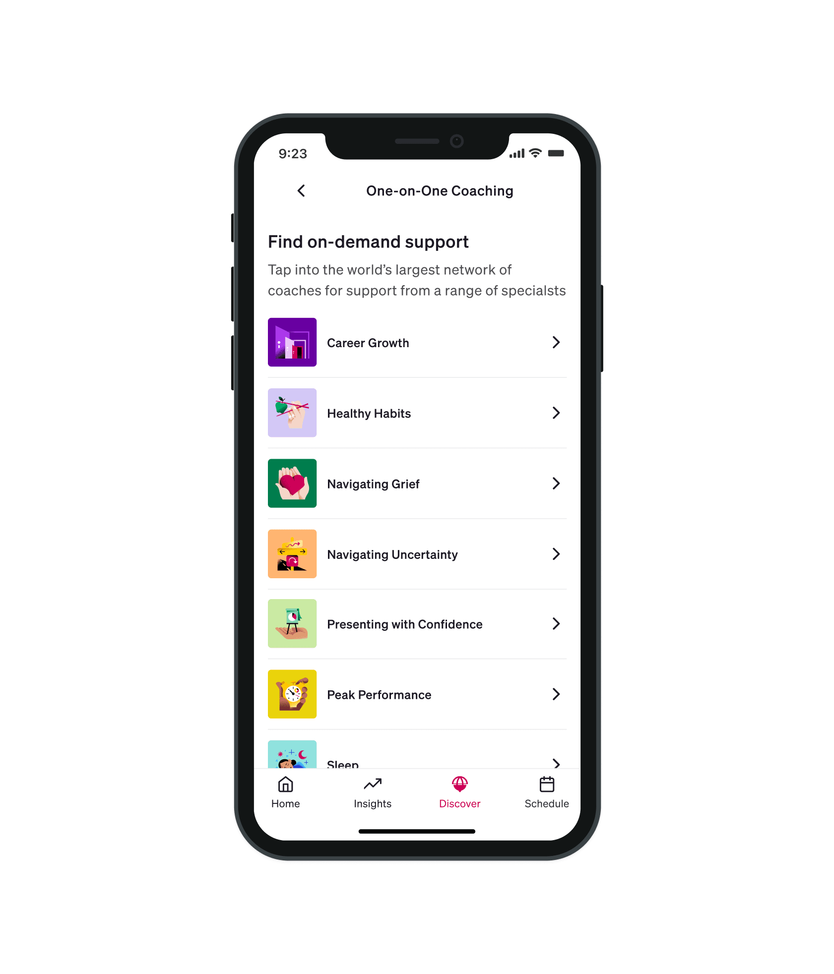 Our network of specialists help employees overcome challenges unique to their experiences — in work and in life. Drive growth in topics like communication effectiveness and navigating uncertainty; offer support in areas like sleep, nutrition, grief, and more.