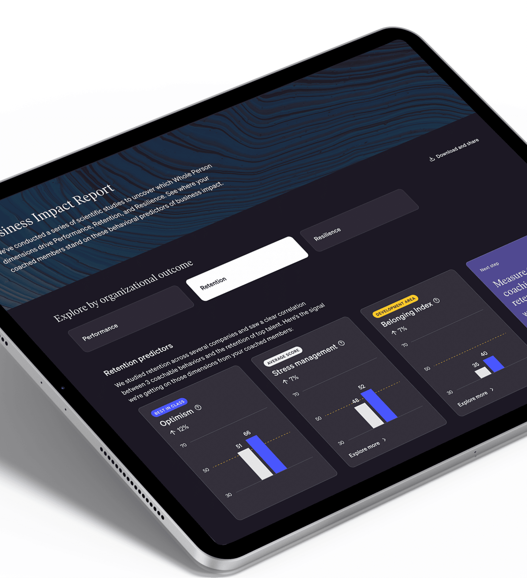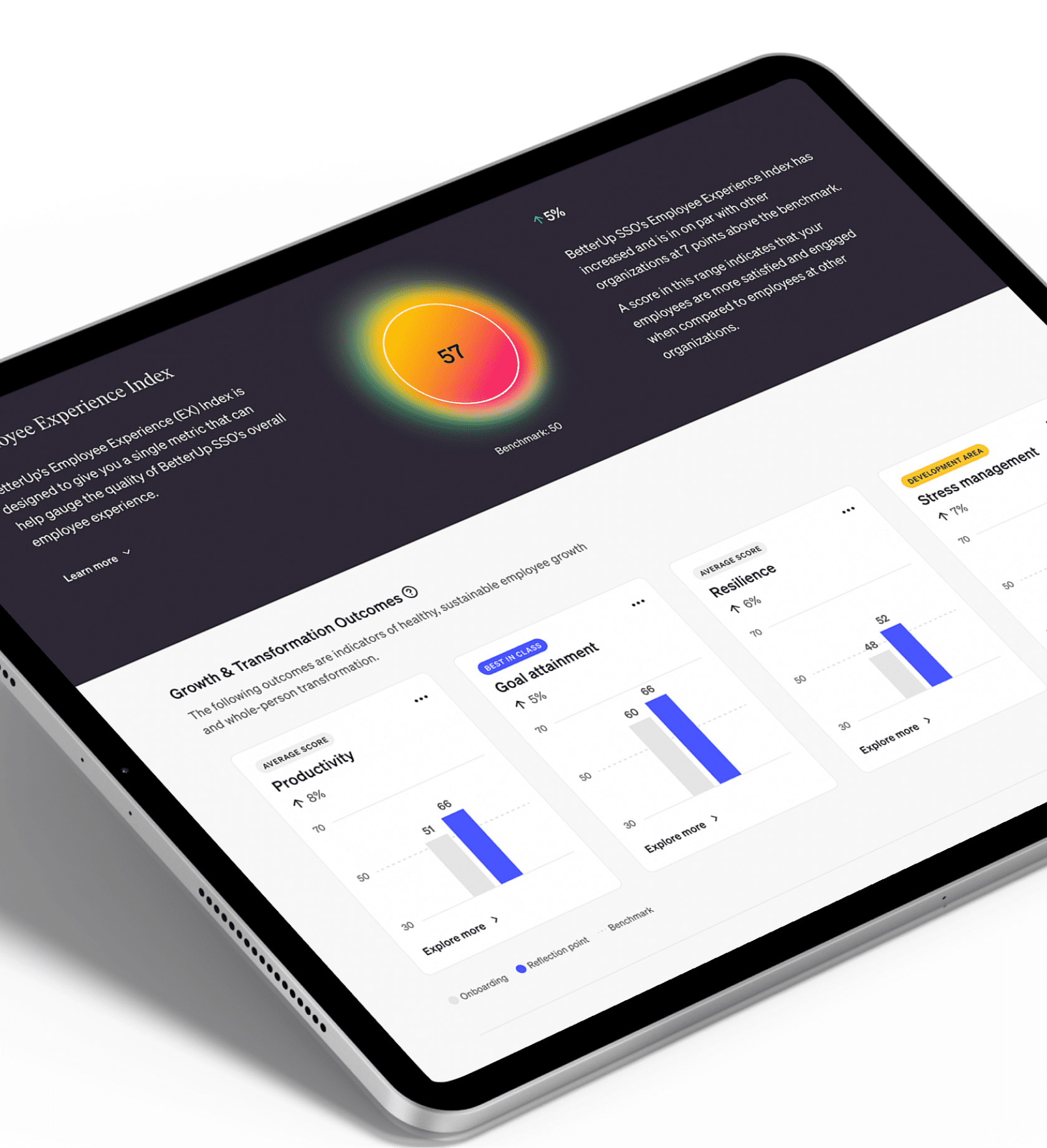 Showcase the direct business value your investment in BetterUp has made on the metrics that matter most to your company — from quota attainment to performance and engagement. We’ll transform your real-time data into shareable outcome studies for your fellow executives, team, and board.