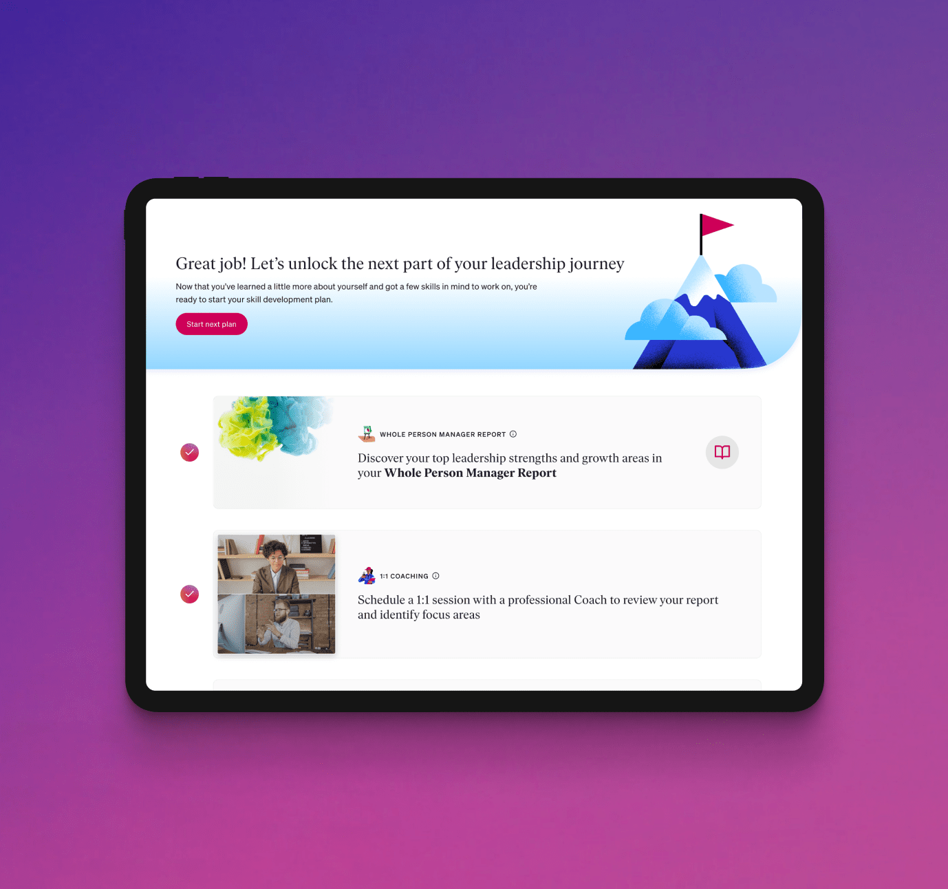 Science-based assessments that identify focus areas for each manager and AI that recommends personalized learning journeys.