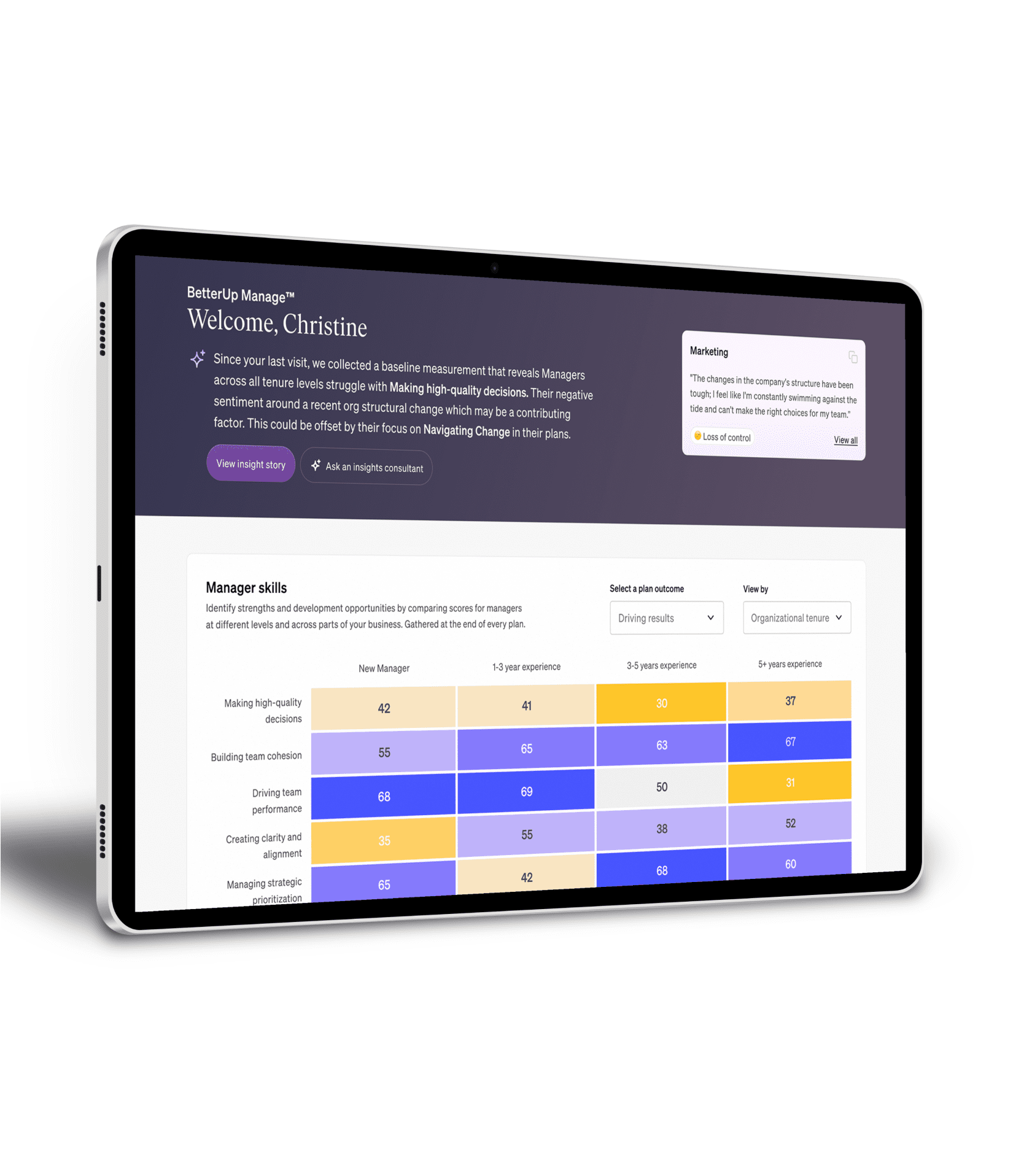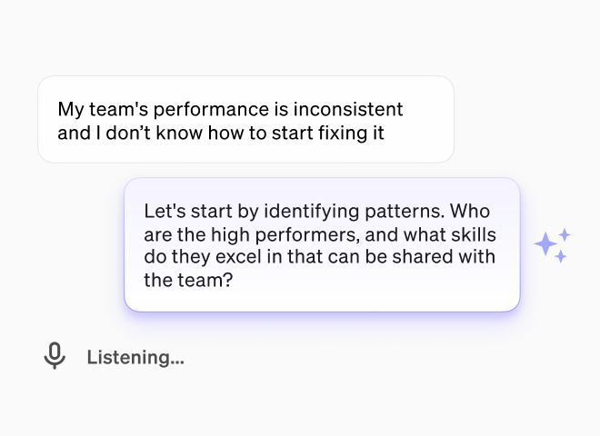 The workforce is always evolving, and so are the needs of managers. Through AI-powered responsive design, Manage adapts as organizational priorities shift ensuring that, whatever the challenge, managers have a partner in facing it.