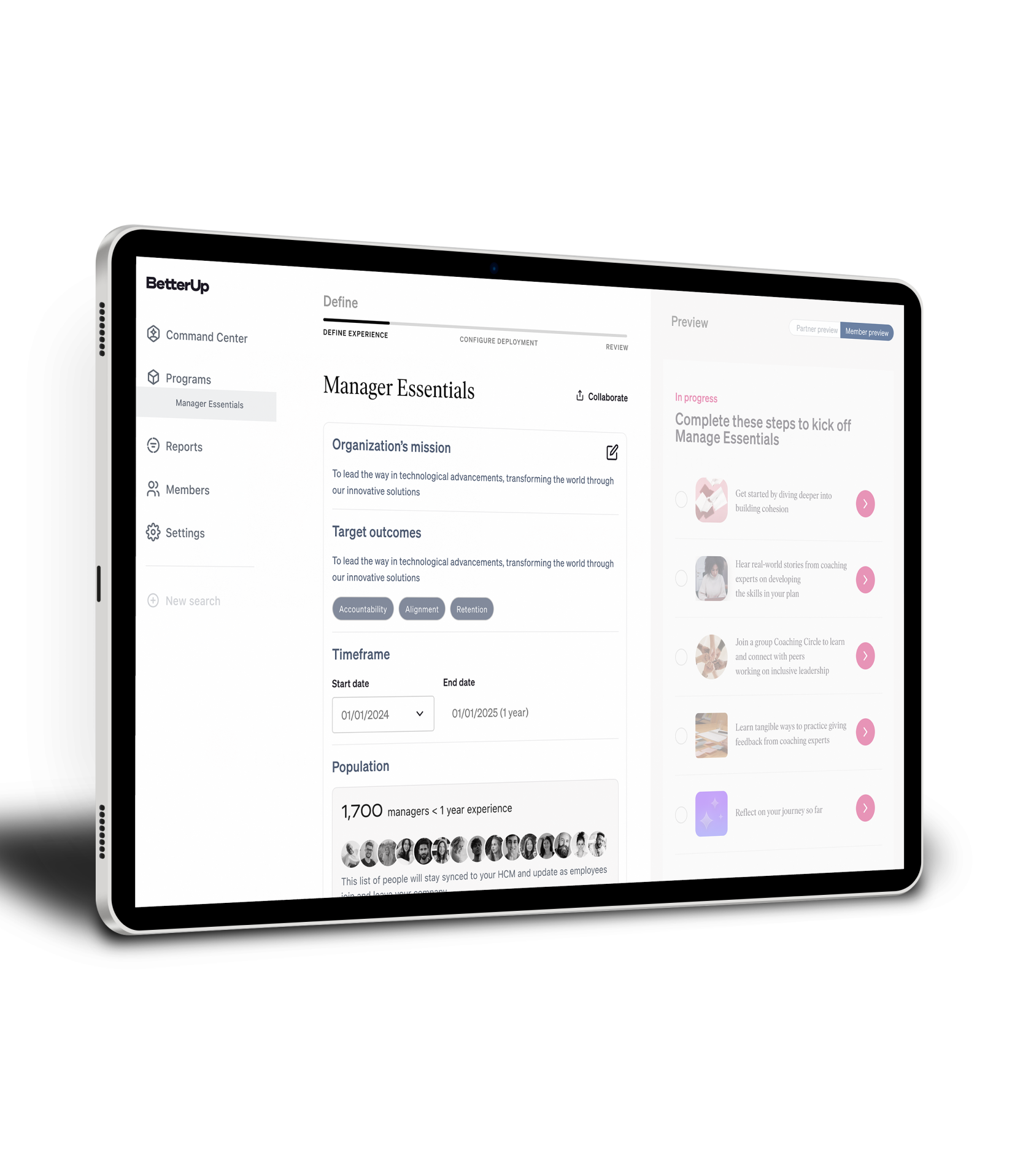 BetterUp Manage™ seamlessly integrates with your existing tools to create customized leadership development journeys that align with your organization’s goals and drive business outcomes.