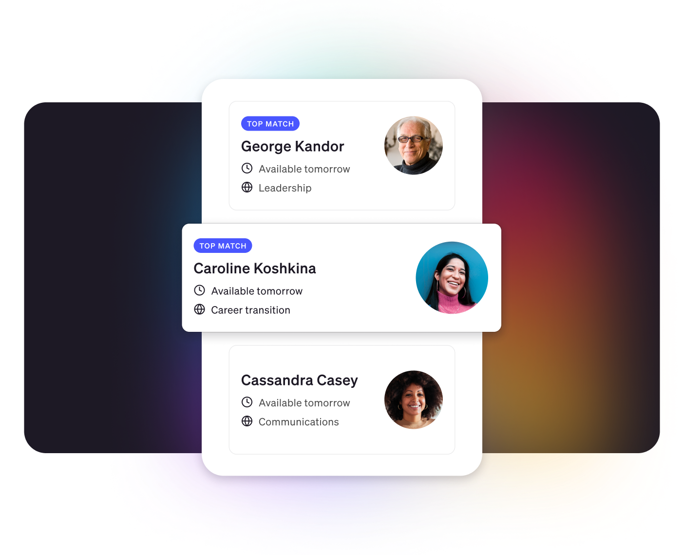 At BetterUp, we match you with a coach based on your goals and preferences, so whether you’re a new manager, a mid-career professional, or someone seeking more purpose and balance, there’s a coach for you.